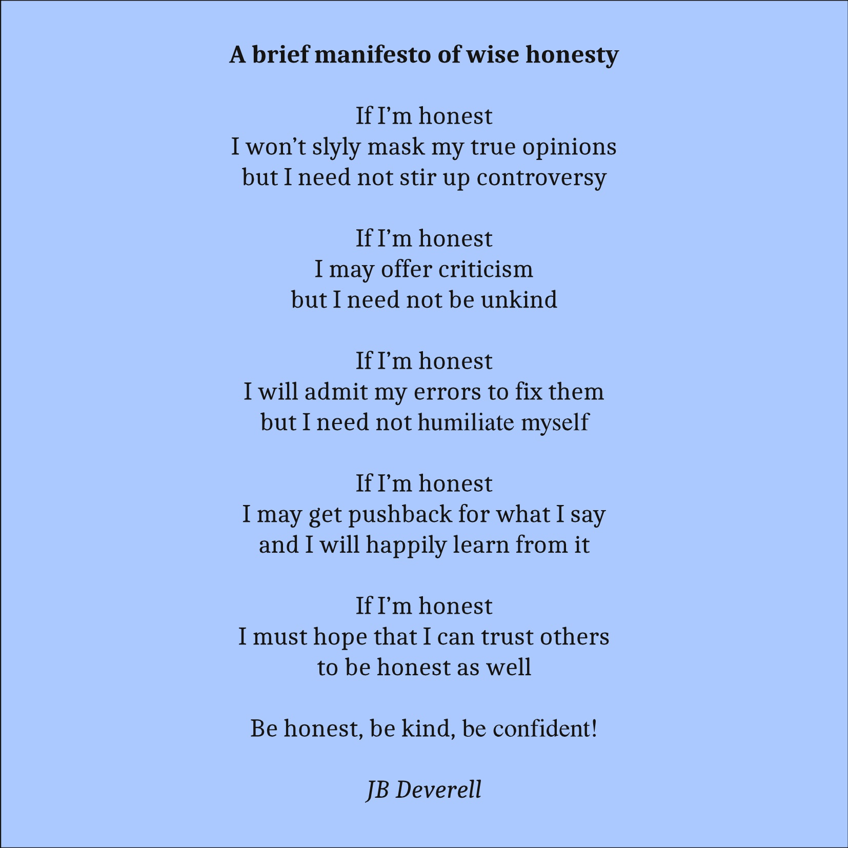 I have tried to encapsulate the balancing act between honesty and tolerance in this little “manifesto”: